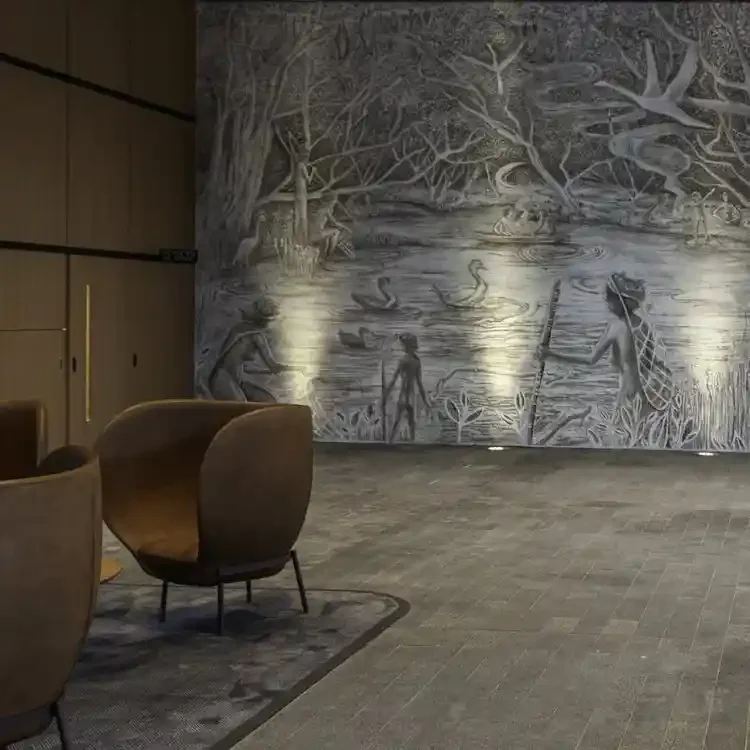 Di Emme was commissioned to create a feature of arches with a bespoke finish of textured plaster, aluminium gilding and colour glazes, to infuse the Georges River Sailing Club with Mediterranean style.